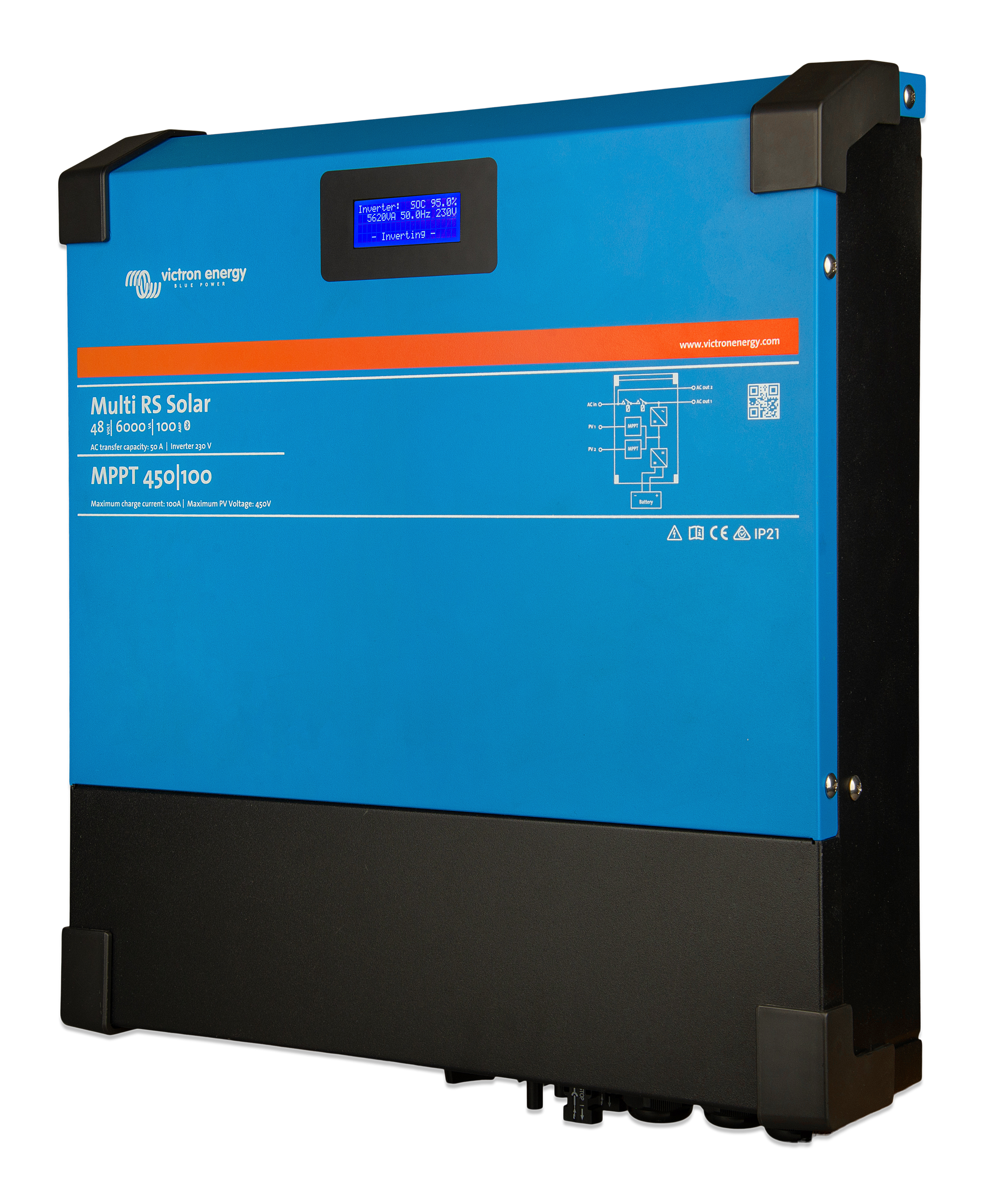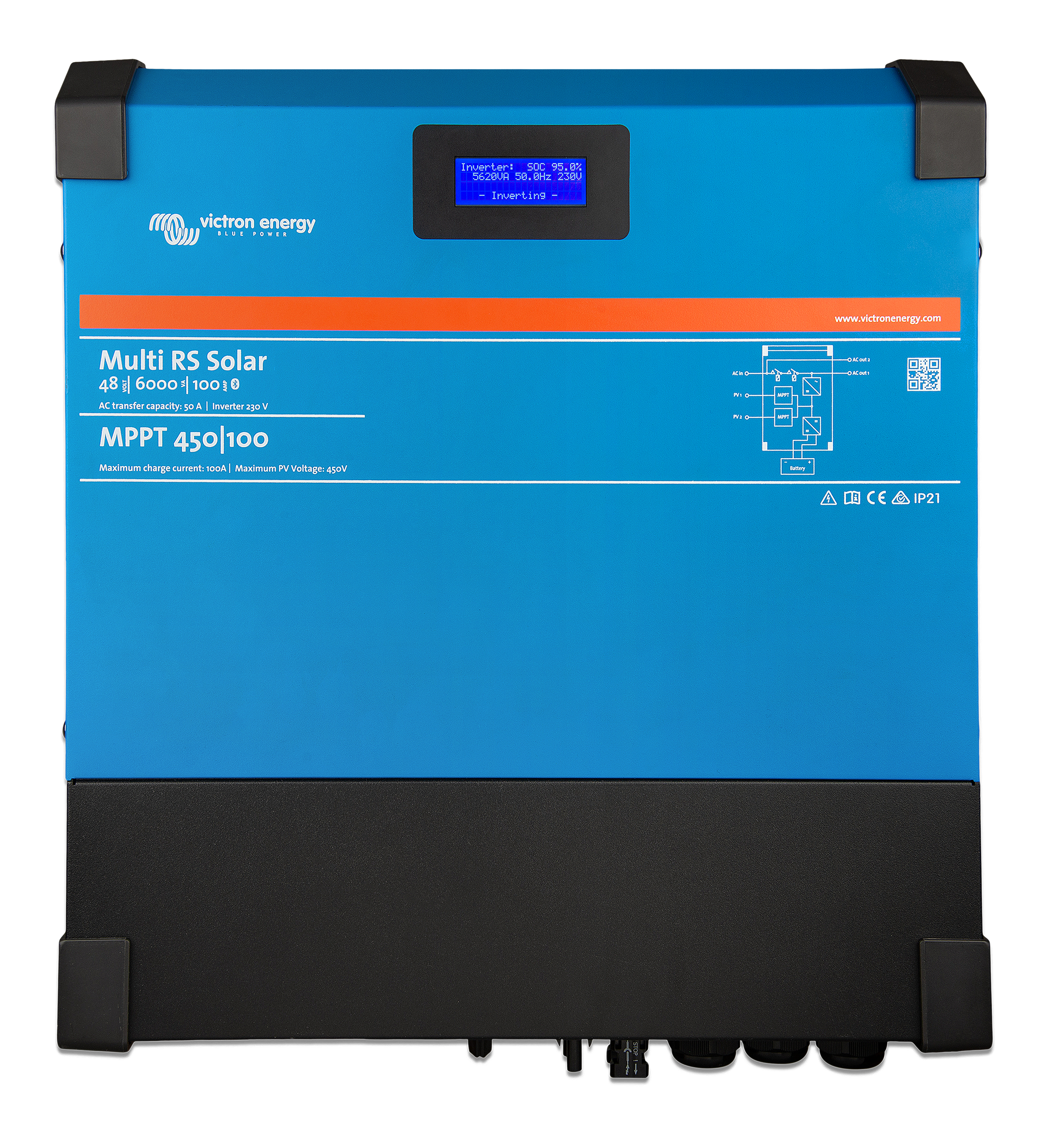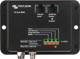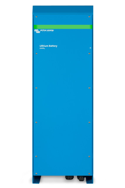 La torre de baterías de ion litio tiene cabida para hasta cuatro baterías de litio de 60 Ah o 90 Ah y un VE.Bus BMS.Se incluyen los cables para 25,6 V o 51,2 V. El VE.Bus BMS y las baterías no están incluidos.