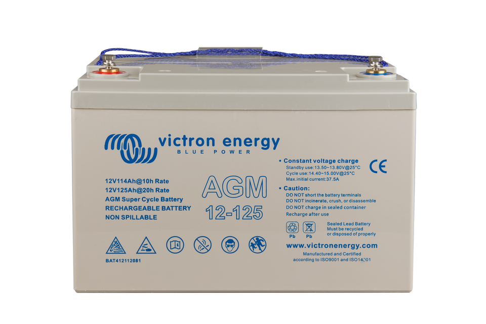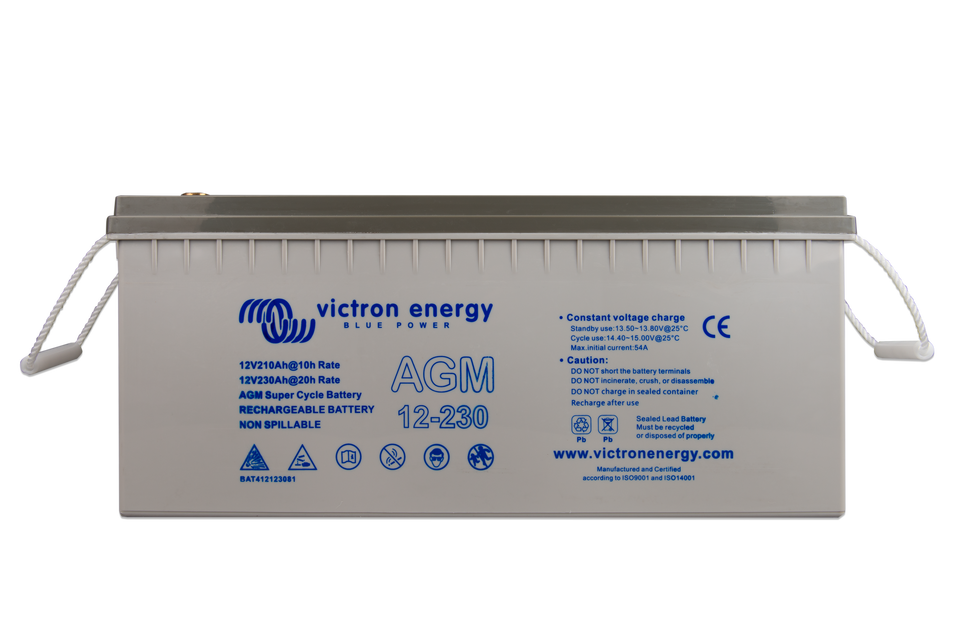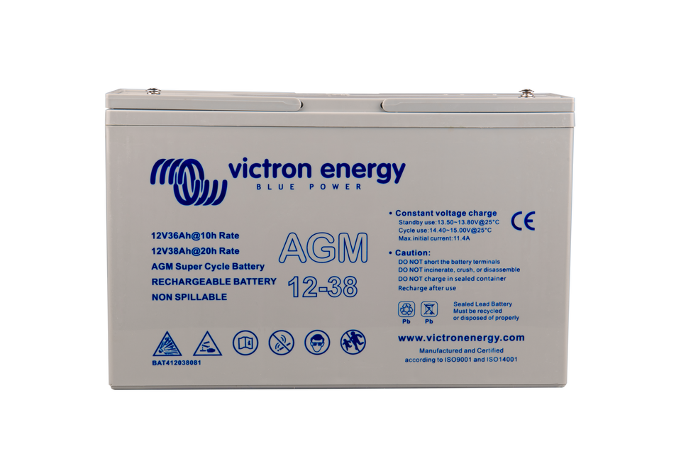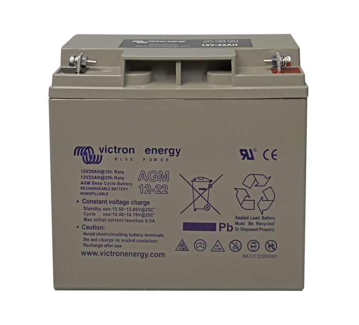 La gama GEL ofrece la mejor durabilidad en ciclo profundo y la mayor vida útil. Debido al uso de materiales de gran pureza y de rejillas de plomo-calcio, las baterías AGM y GEL tienen una autodescarga muy baja, lo que permite largos periodos de almacenamiento sin necesidad de carga. Ambas gamas tienen terminales de cobre plano con pernos M8, que garantizan el mejor contacto posible y eliminan la necesidad de bornes de batería. Las baterías cumplen con las normativas CE y UL y sus recipientes son de ABS resistente al fuego, y disponen de la garantía de Victron Energy de dos años con cobertura mundial.