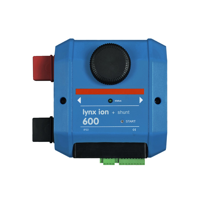Lynx Ion es el sistema de gestión de baterías (BMS, por sus siglas en inglés) que controla las baterías de Litio-Ion de 24 V/180 Ah. Contiene el contactor de seguridad de 350 A y controla el equilibrado de celdas y la carga y descarga del sistema. El Lynx Ion protege el conjunto de baterías tanto de la sobrecarga como de la descarga completa.