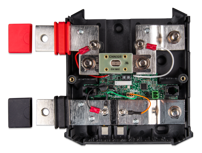 El derivador Lynx VE.Can es un derivador inteligente de 1000A con espacio para un fusible (no incluido); el monitor incorporado de la batería monitoriza con precisión el estado de carga de su batería. Utilice el Control de Color GX para leer la información. Parte del sistema modular de distribución Lynx.