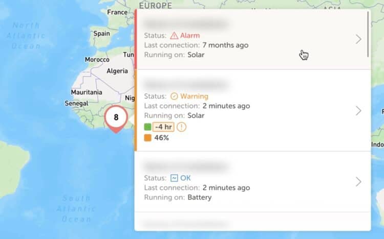 You can access the map by clicking the globe icon in the top-right corner of the installation overview. This will display all your systems around the world.