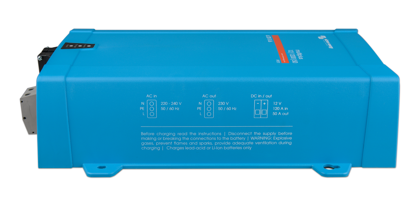 En caso de apagón, o de desconexión de la toma de puerto o del generador, el inversor integrado en el Multi se activa automáticamente y asume el suministro para alimentar las cargas conectadas. Esto ocurre tan rápidamente (menos de 20 milisegundos) que los ordenadores y demás equipos electrónicos continúan funcionando sin interrupción.