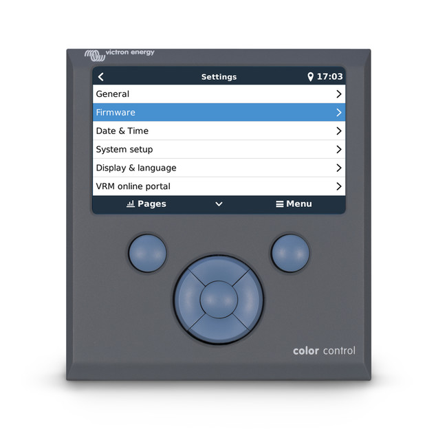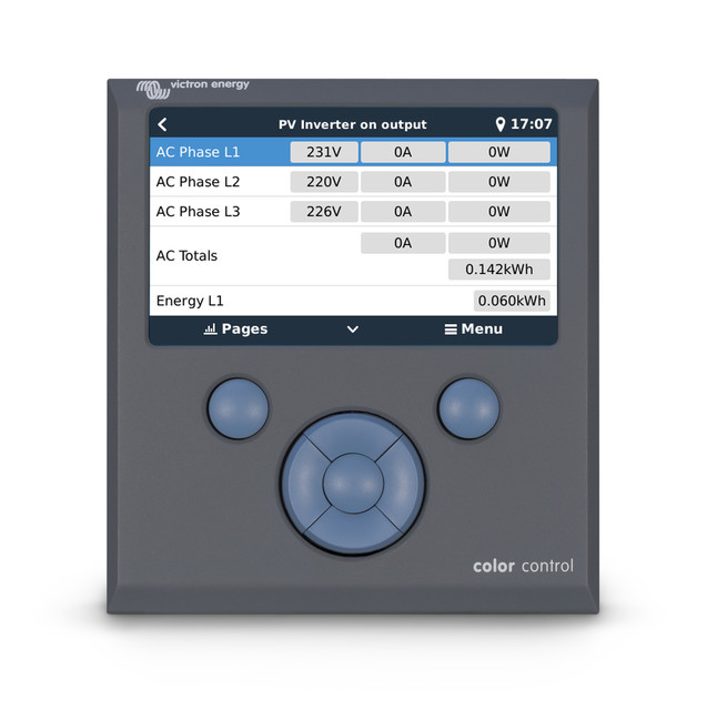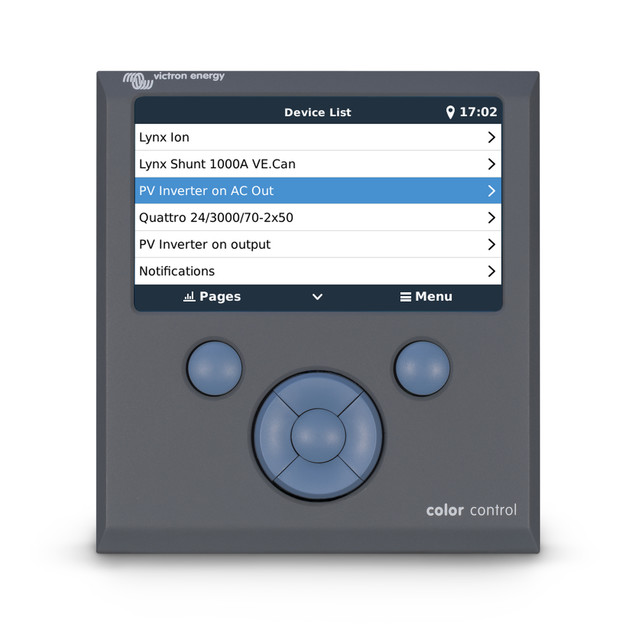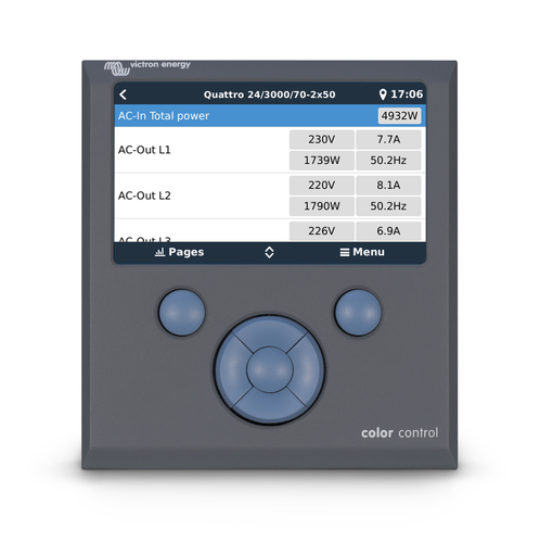 El Color Control GX es el centro de comunicaciones de su instalación. Ofrece información en tiempo real de un vistazo y le permite controlar todos los productos conectados a él. Podrá controlar todo el sistema - desde prácticamente cualquier parte del mundo - accediendo a su Color Control GX mediante nuestro Portal Victron Remote Management (VRM), de uso gratuito.