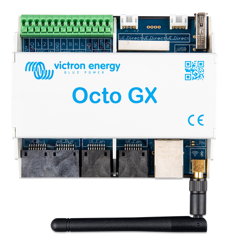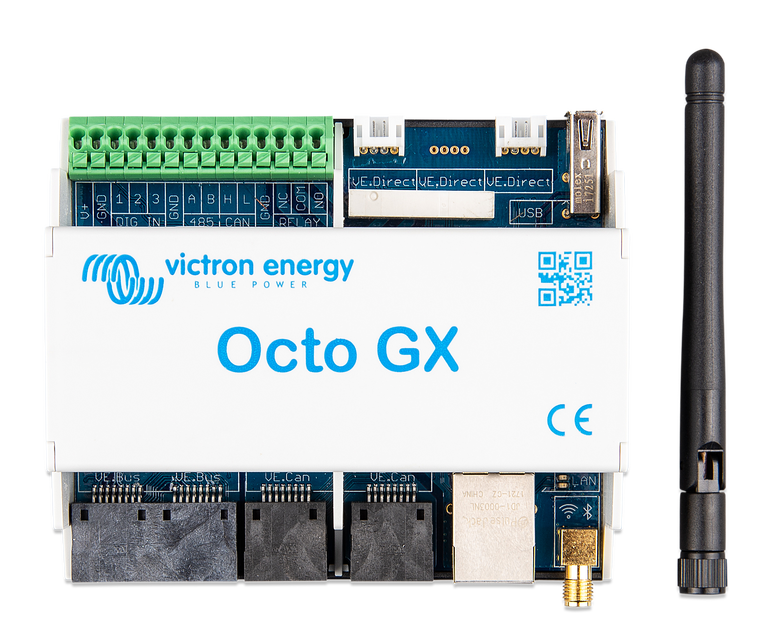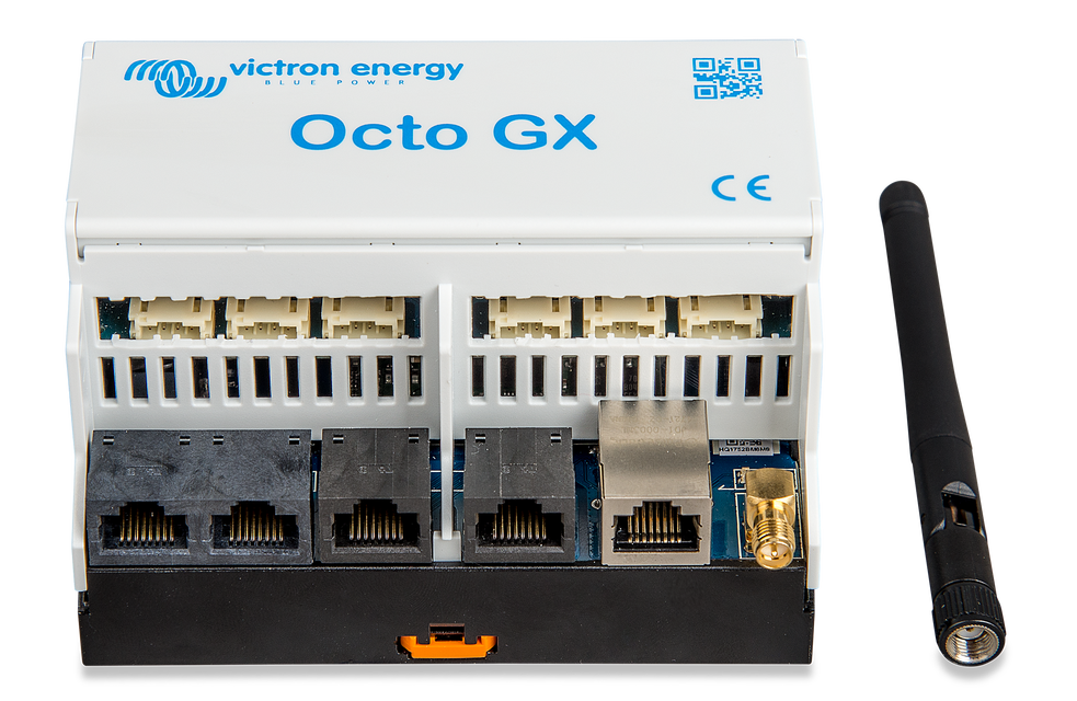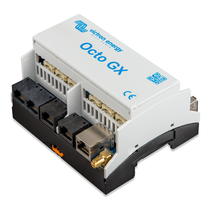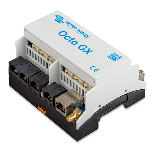 El Octo GX pertenece a la familia de productos GX. El Octo GX es la mejor opción para las instalaciones que tienen muchos cargadores solares MPPT, ya que tiene 10 puertos VE:Direct.