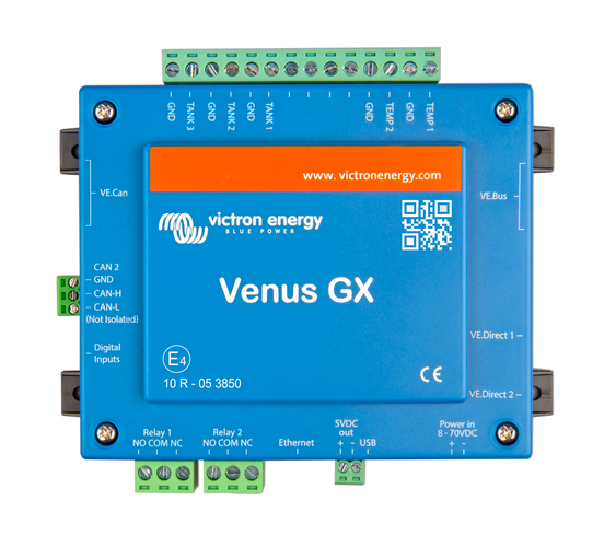 El Venus GX puede programarse para arrancar automáticamente su generador, por criterios de baja tensión , alta demanda o por el estado de carga de la batería. Se puede también ajustar para retrasar el encendido hasta que finalicen lo periodos de «tranquilidad», evitando así molestias accidentales en mitad de la noche.