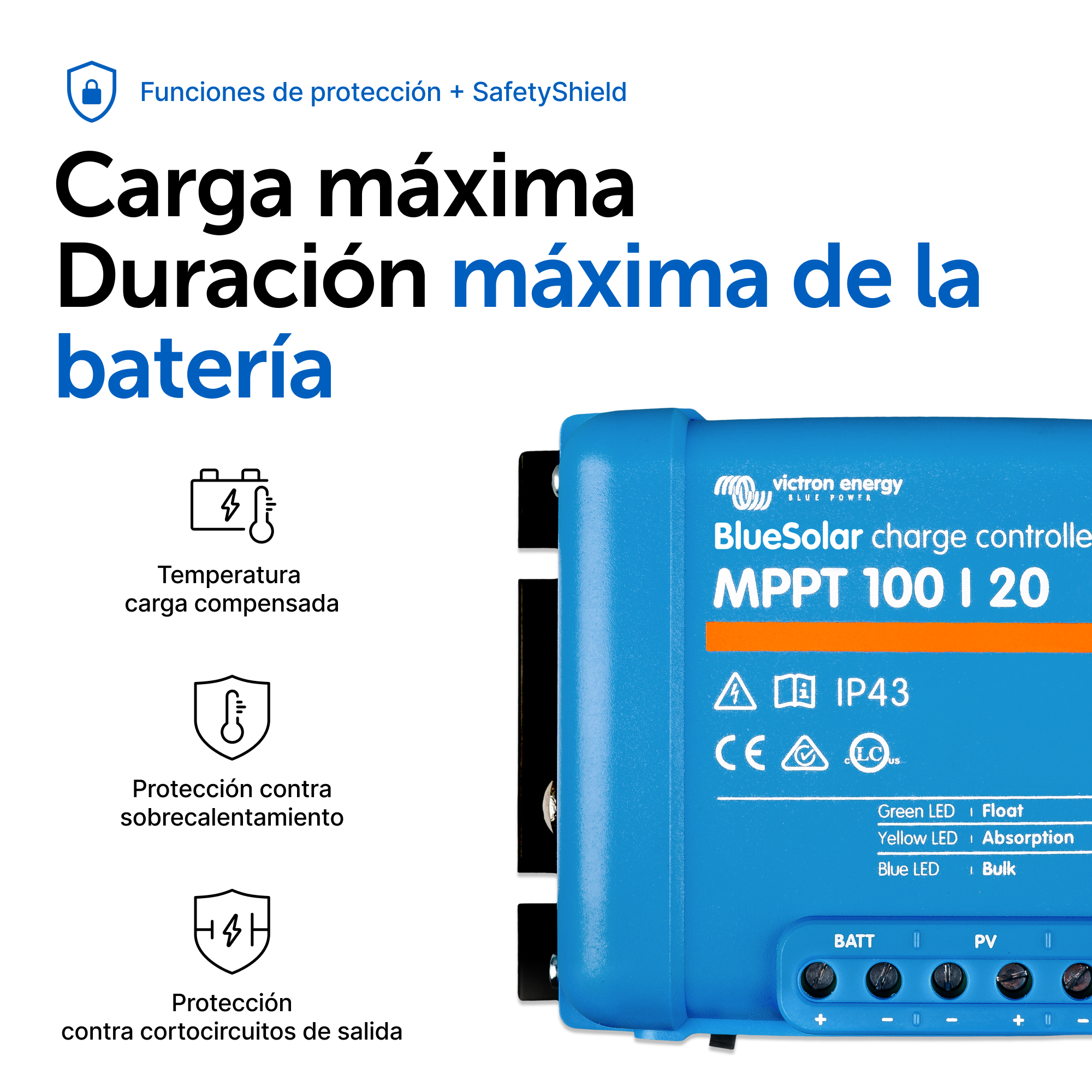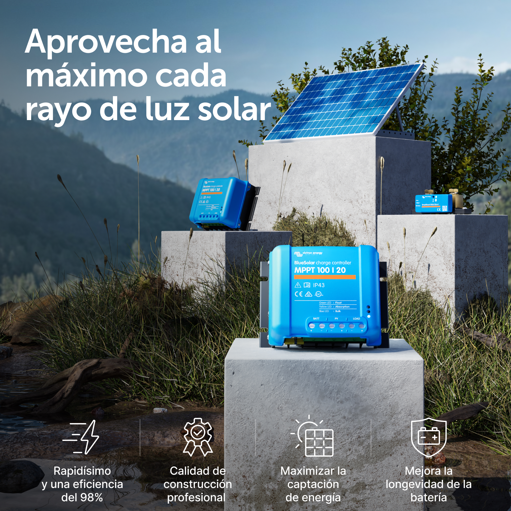 Gracias a la continua monitorización de la tensión y corriente de salida de sus paneles solares (FV), la tecnología MPPT (Seguimiento ultrarrápido del Punto de Máxima Potencia, por sus siglas en inglés) garantiza la recogida y almacenamiento de cada partícula de energía disponible en sus paneles. La ventaja de este proceso se hace más evidente cuando el cielo está parcialmente nuboso y la intensidad de la luz cambia constantemente.