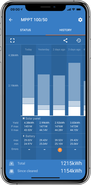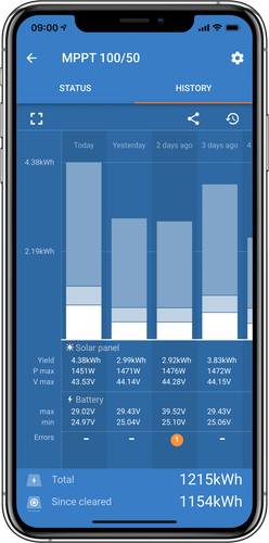 VictronConnect le permite obtener información del estado en tiempo real y configurar cualquier producto de Victron que tenga Bluetooth integrado o que esté conectado a una mochila VE.Direct Bluetooth Smart.
