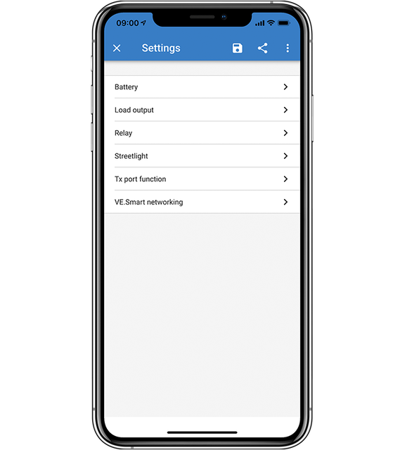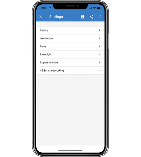 Realice el seguimiento y control a distancia de la multitud de opciones de su cargador MPPT SmartSolar añadiéndole una mochila Bluetooth y sincronizándolo con su smartphone u otro dispositivo mediante VictronConnect. Si su instalación está conectada al Portal de Gestión Remota de Victron (VRM), también tendrá acceso a toda la potencia de su MPPT, en cualquier momento y en cualquier lugar; ambos servicios son gratuitos. En el caso de instalaciones remotas, aun cuando no haya conexión a internet o señal de teléfono disponible, podrá controlar su MPPT mediante Bluetooth conectándolo a un dispositivo LoRaWAN(red de área amplia de largo alcance), disponible opcionalmente.