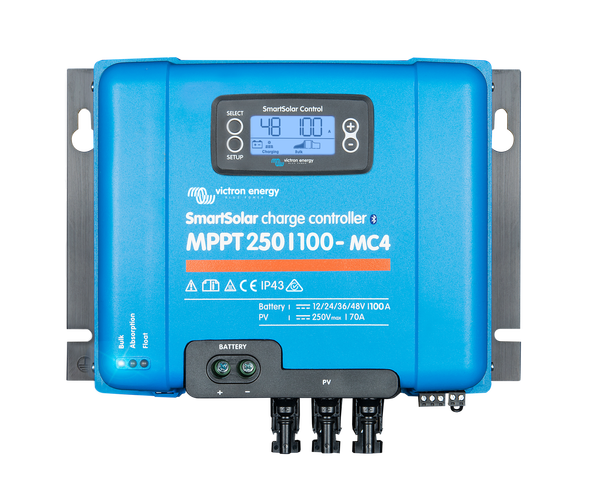 Los cargadores solares recogen energía de sus paneles solares y la almacenan en sus baterías. Utilizando la tecnología más rápida y novedosa, el SmartSolar maximiza esta recogida de energía, gestionándola de forma inteligente para alcanzar la carga máxima en el menor tiempo posible. El SmartSolar cuida de la salud de la batería, ampliando su vida útil.